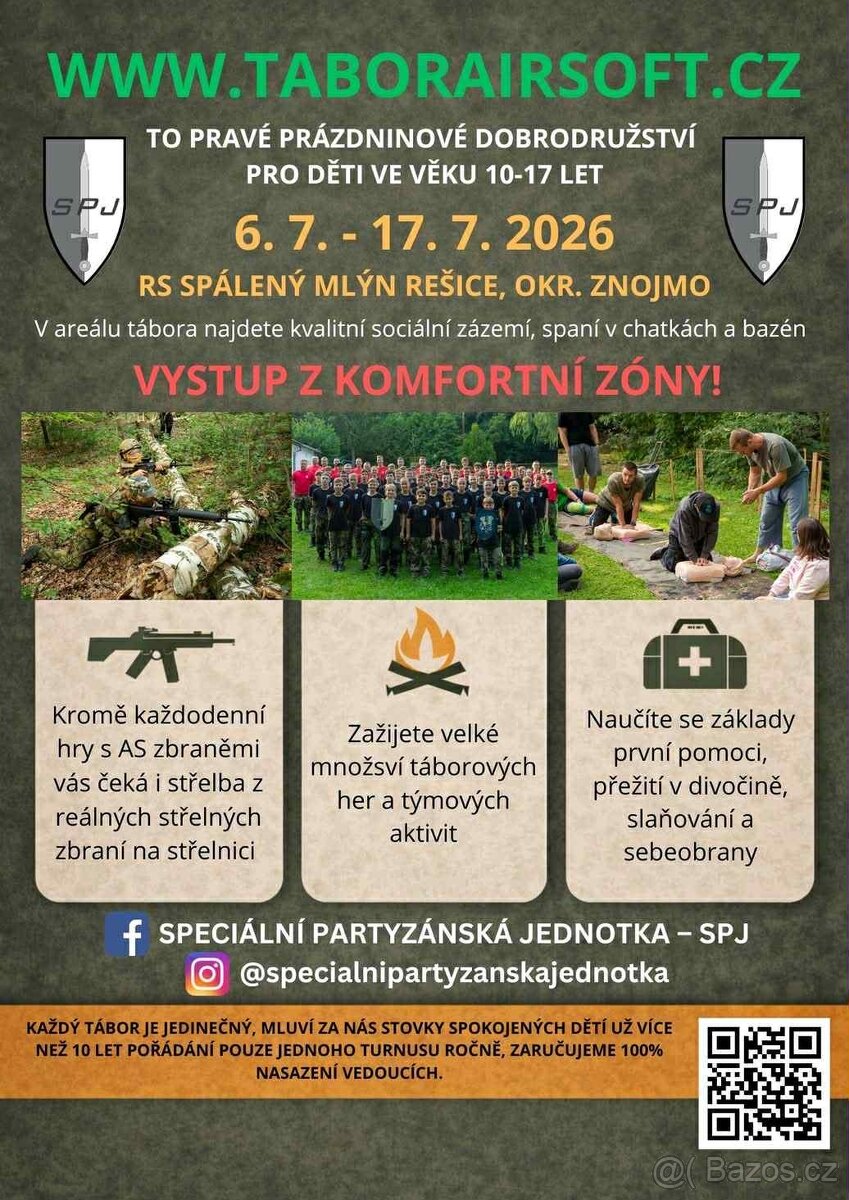 Tábor, který bude pro vaše děti opravdový zážitek. Hra o přežití, slaňování, střelba z airsoftových zbraní, výuka první pomoci, týmové hry. U nás se děti nenudí.