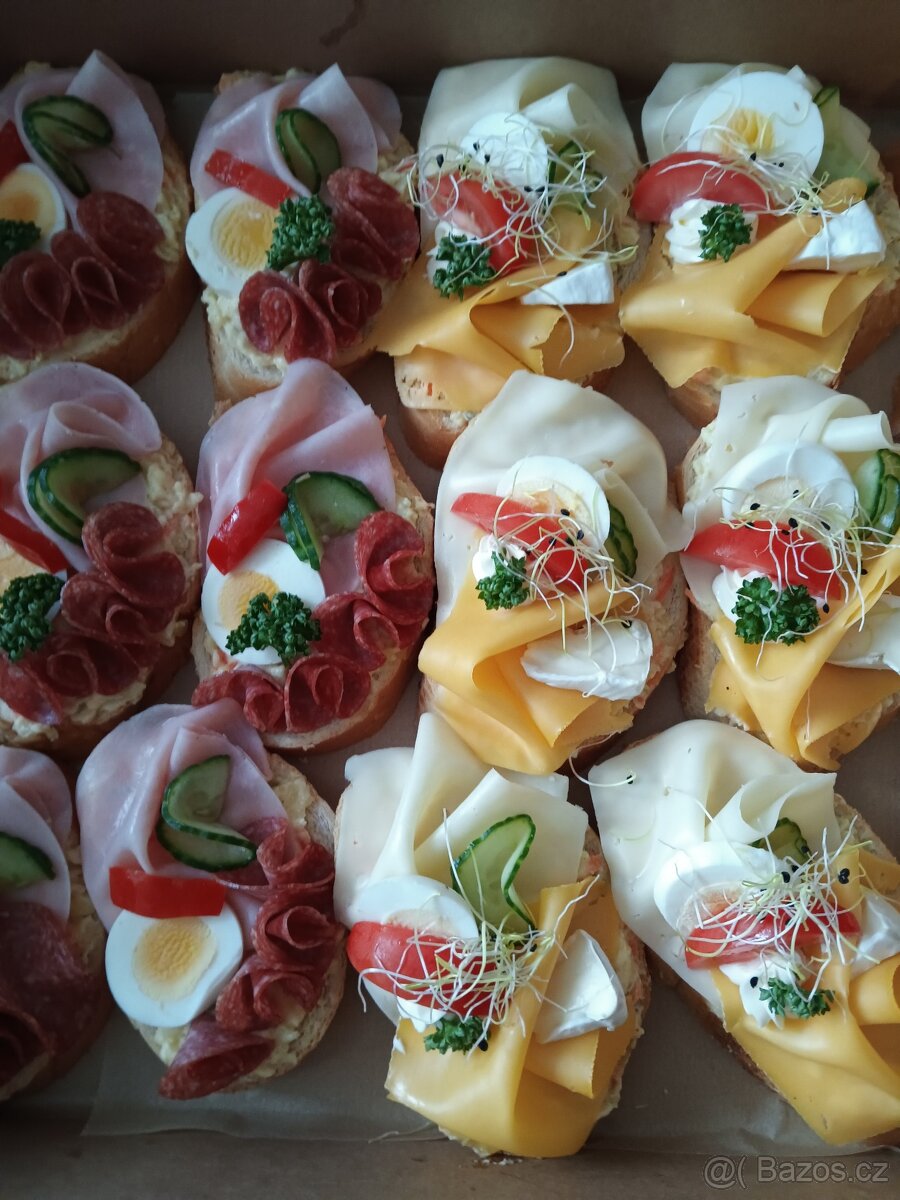 Na objednání mohu zhotovit chlebíčky a slané pohoštění.Uvedena cena 35 Kč je za jeden chlebíček.